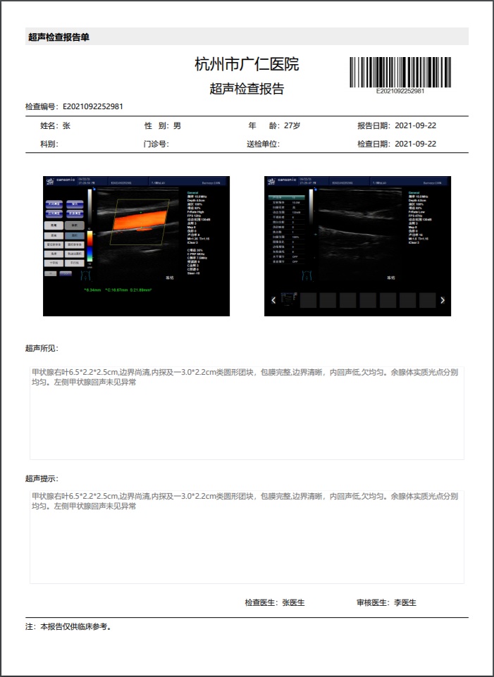 支持智能總檢評價、批量打印健康體檢報告,支持職業病/學生體檢,支持微信查看電子健康體檢報告